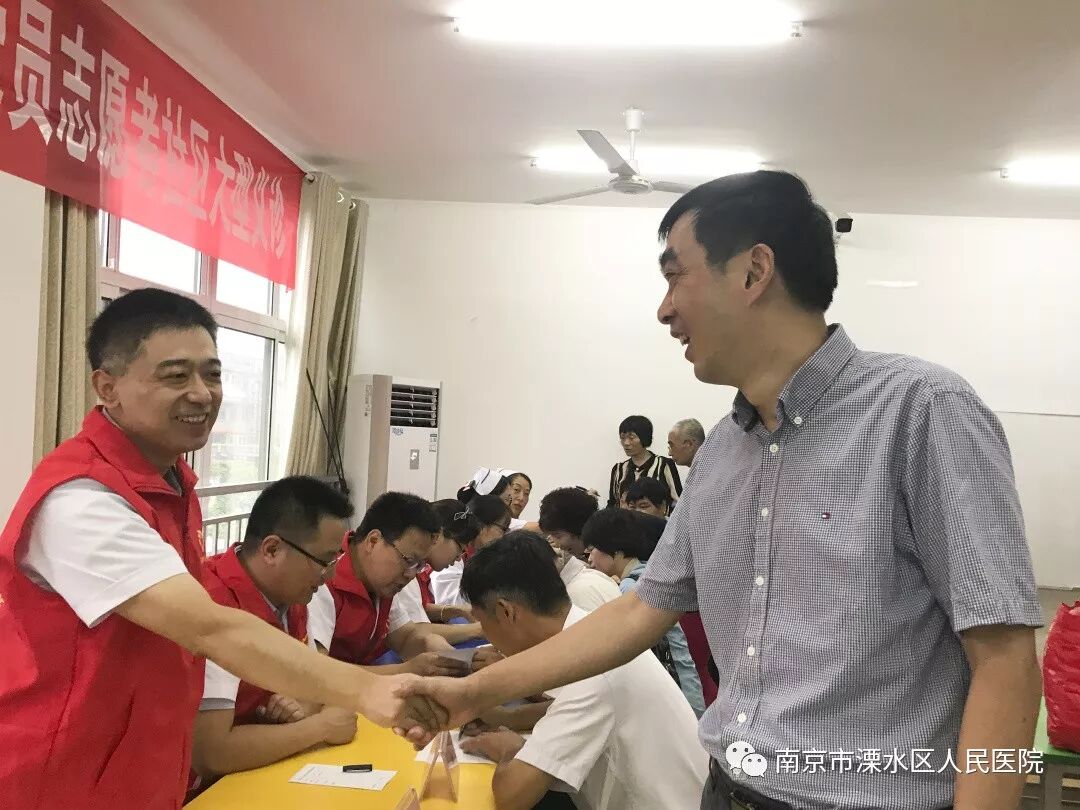 9月21日上午,我院组织党员志愿者医疗团队来到秦淮路社区党群服务中心,为那里的居民提供义诊咨询及自救互救技能培训,开展卫生应急知识宣传。副区长经地生、区卫计局局长鲁慧荣来到现场,同社区居民亲切交流。 副区长经地生、区卫计局局长鲁慧荣同社区居民亲切交流 副区长经地生同时慰问了我院引进的高层次人才张恒博士及在场的医务人员 前期做了充分的准备工作,秦淮路社区工作人员将义诊信息向居民发出通知,并在电子屏进行滚动。尽管下着小雨,前来义诊的居民依然很多。我院派出的医疗团队有普外科主任张恒博士、神经内科副主任邹荣成副主任医师、内分泌科副主任王雷副主任医师、皮肤科主任周力俭主任医师、妇产科薛代兰主治医师、老年医学科褚玉会主治医师、骨科叶林辉主治医师、耳鼻喉科陈红霞主治医师等,受到了百姓的欢迎。院长嵇振岭、院党委书记陈正兵、院纪委书记杨国珍参加活动。 院长嵇振岭、院党委书记陈正兵与社区工作人员交流 杨国珍书记与居民深入交流 普外科 普外科主任张恒博士作为我院引进人才第一次参加义诊进社区活动,在他面前排队的居民很多,排在第一个的是陈沛桥村的陈大妈,张博士为她解决了胆囊术后的疑惑。 普外科张恒博士在记录患者病情 皮肤科 “溧水好医生”皮肤科周力俭主任面前有位小患者,在得到满意回答后,友好地同周主任握了个手说再见。 皮肤科周力俭主任与小患者握手再见 神经内科 “区十佳医生”神经内科邹荣成副主任仔细为社区居民检查神经系统,排查身体的故障。 神经内科邹荣成副主任医师在了解患者病情 骨科 “区十佳青春榜样”骨科叶林辉主治医师认真查体,得到了居民的交口称赞。 骨科叶林辉主治医师为患者查看病情 内分泌科王雷副主任、妇产科薛代兰主治医师、老年医学科褚玉会主治医师、耳鼻喉科陈红霞主治医师都为居民们提供了优质的医疗咨询服务。 内分泌科 内分泌科副主任医师王雷在听患者描述病情 妇产科 产科薛代兰主治医师在询问患者病况 老年医学科 老年医学科褚玉会主治医师在为患者听诊 耳鼻喉科 耳鼻喉科陈红霞主治医师在检查患者鼻腔 义诊现场,内分泌科护士长顾爱英、康复医学科护士长张霞、妇科护士长李姁、院感科陈红珍主任为居民提供免费测血压和测血糖服务,病案管理科徐岚科长向居民发放了资料。本次活动共接受义诊咨询100余人,发放资料健康教育宣传资料200余份。 内分泌科顾爱英护士长和康复医学科张霞护士长在为居民测血糖 院感科陈红珍主任在为居民测血糖 妇科护士长李姁在为居民测血压 病案管理科科长徐岚向居民发放健康教育资料 义诊的同时,麻醉科洪敏主治医师在会议室向大家播放了自救互救视频,为居民讲解应急知识,并和陈红珍主任、叶林辉主治医师共同示范了单人徒手心肺复苏和异物阻塞气道引起窒息的急救方法——海姆利克氏操作急救法,居民们都表示非常实用。 麻醉科洪敏医生播放自救互救视频 示范单人徒手心肺复苏急救法 示范异物阻塞气道引起窒息的急救方法——海姆利克氏操作急救法 为充分发挥广大党员在社区建设中的先锋模范作用,大力培育和践行社会主义核心价值观,我院定期组织医疗团队深入社区开展义诊、健康咨询、疾病筛查等多项活动。下一步,我们将围绕“健康溧水”发展理念,共建“健康社区”的目的,继续深入村镇、社区举办大型义诊、健康讲座等活动,将优质医疗资源下沉到基层,着力解决群众反映强烈的突出问题,不断提高人民群众的健康水平。