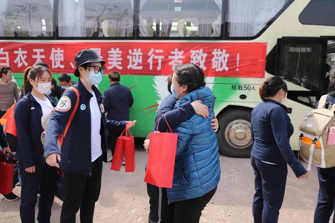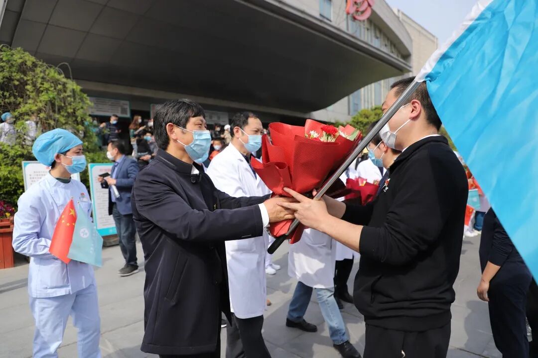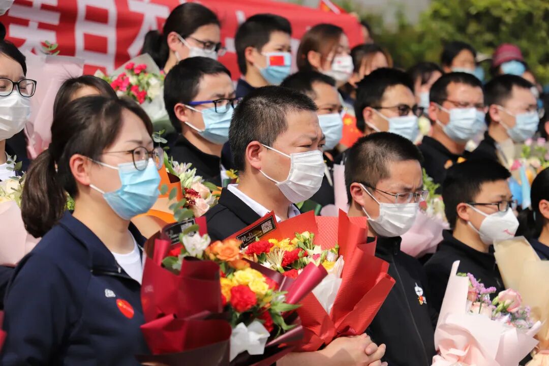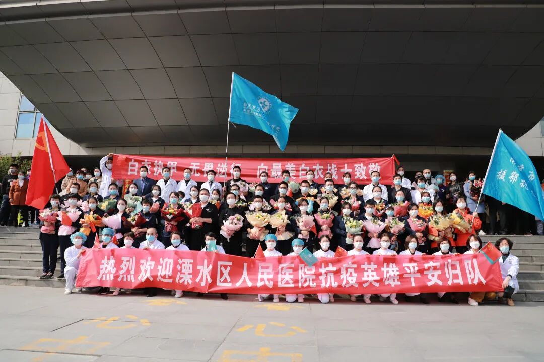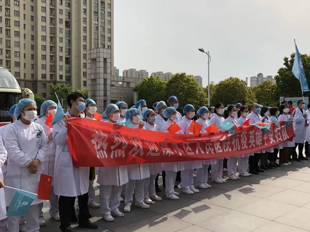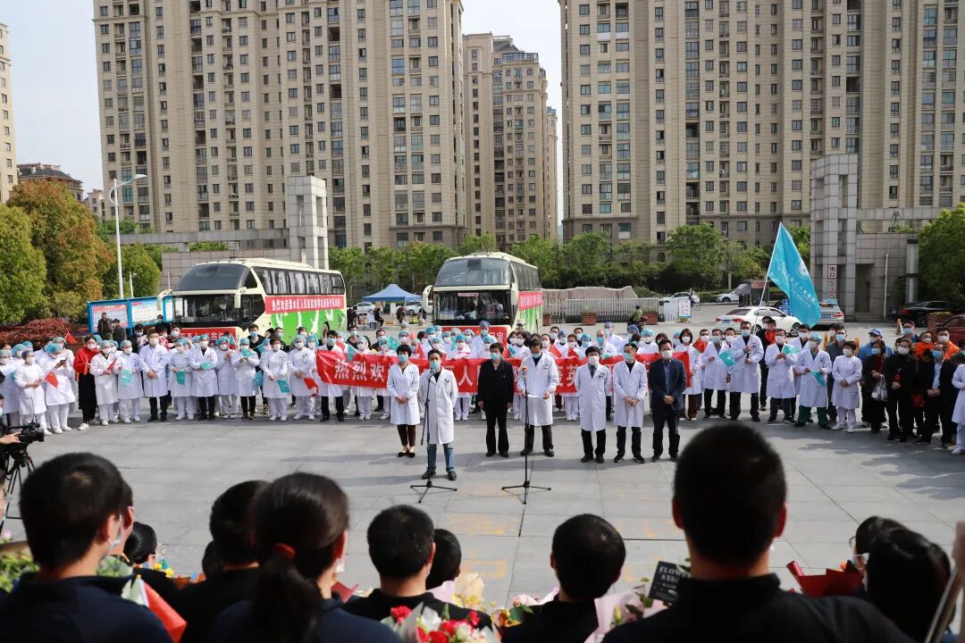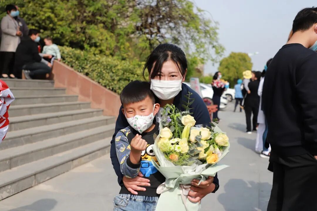 春光铺泄十里 不及你归来时的笑靥 4月14日下午, 我院援湖北38名医疗队员 结束隔离休养,平安回家 至此 我院42名援鄂英雄全部平安归来 医院为他们举办欢迎仪式,热烈欢迎38位援鄂抗疫英雄平安归来。 区卫健委党委副书记管荣保、我院院长嵇振岭、党委书记陈正兵等全体院领导及140多名医护代表、家属代表参加了仪式。 嵇院长表示,新冠肺炎爆发的关键时刻,我院42名医护人员挺身而出、慷慨赴险,奔赴武汉支援,经过近2个月的艰苦奋战,在疫情防控的战场上捷报频传、战果辉煌,全院上下感到无比欢欣和鼓舞。 今天,42名队员终于一个不少、平平安安归队,嵇院长代表溧水区人民医院党政领导班子,对42名队员及队员家属,表达了最崇高的敬意和最诚挚的问候!同志们你们辛苦了!欢迎归队! 管书记表示,当初42名英雄怀着满腔的热情奔赴前线,现在他们带着满身的荣光回到医院,希望大家将抗疫的精神和饱满的热情带入到今后的工作中,将医院建设得更好。 见到专门前来迎接的医务部张立平主任、护理部鞠昌萍主任、患者服务中心殷春花主任,思念、开心、激动都涌上心头,一个大大的拥抱,是回归的喜悦。 我们回家啦! 家人们手拿横幅、鲜花在家中等待白衣战士们回家。 领队黄刚举着院旗,把38名战士一个不少的带回来,实现了他当初许下的诺言。 区卫健委党委副书记管荣保、我院院长嵇振岭、党委书记陈正兵等院领导为战士们献上鲜花。 鲜花赠英雄 春风十里 欢迎回家 |