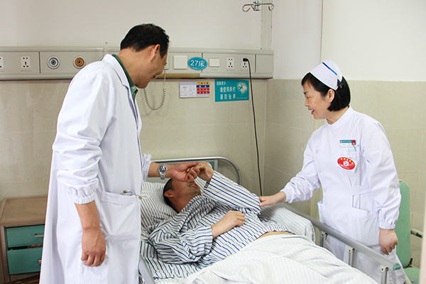 5月21日(周一)刚上班,九区胸外科病房的医护人员正忙碌着,突然听到有人说电视台来采访,科主任全勇辉和护士长邢华兰感到很吃惊,没有接到宣传部门的通知啊。一询问,原来电视台记者是应长期住院病人刘维平的家属邀请主动前来。 住院长达半年之久的27床刘维平,今天正好要出院。为什么他今天准备出院,亲戚去请电视台来,什么意思?事先也没有听他家说啊?主任和护士长两人面面相觑,眼神中满满的疑惑,在医患关系不太和谐的今天,记者来会是什么意思? 回想刘维平整个生命的抢救过程,本来非常有成就感的医护人员不免有些紧张,平时我们关系非常好的,难不成…… 当家属在电视记者的见证下,将一面“仁心仁术,德艺双馨”的锦旗送给医院全体参与救治和护理刘维平的医护人员时,大家心中突然有了一种深深的感动,为自己也为病人家属。