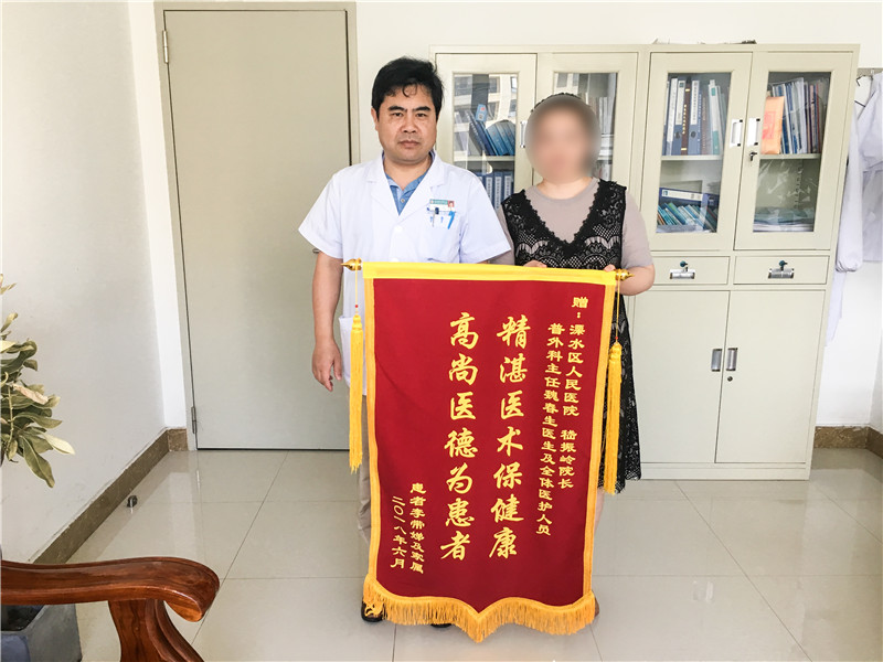 6月25日,即将出院的李女士家人将一面“精湛医术保健康,高尚医德为患者”的锦旗送到我院六病区,感谢院长嵇振岭、普外科主任魏春生等普外科的医护人员。李女士的女儿说,“精湛医术、高尚医德”对嵇振岭院长和他的普外科团队是最贴切的,这是我们家属的心声。 家住溧阳的溧水人李女士,今年49岁,因为一个月前无明显诱因出现脐周腹部疼痛,6月6日来我院查肠镜提示“距肛门1250px结肠占位?”。得知结果后,一家人非常的着急,第一想到的是去南京、去三级医院,找专家、找名医手术。在溧阳某医院上班的女儿回来了,她经多方打听了解,近年来我院与中大医院合作共建,成为东南大学附属中大医院溧水分院,在医疗技术和服务质量上迅速提升,医院的院长是国际肝胆胰外科学会(IHPB)委员 、国际大肠癌学会(ICCRC)发起委员会委员,博士生导师、主任医师,享受国务院政府津贴,留学德国的国内外普外科的知名专家嵇振岭教授,于是与家人商量后决定留在我院手术。 “病人的信任是最好的配合”。嵇振岭院长总是这样教导他的学生。他主刀手术的择期病人,再忙都要认真对病情进行一个评估,亲自察看病人。“我们面对的是病人,当一个人生病了,她会想很多,我们一定要让她们知道,我们医生是认真负责的为她们看病,这样她们就会很放心,病人的信任和配合是手术成功的基础。”嵇院长说。 病人系中老年人,原有慢性胃炎伴糜烂、贫血和心脏瓣膜病等基础病,病程中有发生心脑血管意外、血栓等风险,经过仔细的术前讨论及完善的术前准备,6月15日由嵇振岭院长主刀、魏春生主任等多名医生配合,成功开展了根治性右半结肠切除术。术后在管床医生及护士的精心治疗护理下,李女士恢复良好,未出现任何并发症。 李女士日渐好转,脸上也露出了久违的笑容。6月25日,李女士的女儿特意制作一面锦旗送来以示感激,感谢嵇院长领导下的这支医术精湛、医德高尚的普外科团队。