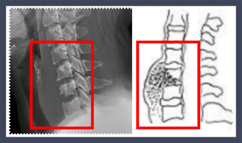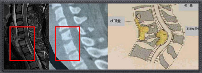 结核杆菌进入血液循环系统后,在颈椎附近“安家落户”,产生脓液、形成病灶,谢女士其中有一处颈椎的右侧骨质部分已经被结核杆菌吞噬得“面目全非”。由于颈椎位置距离人的呼吸、心跳中枢都较为接近,颈椎结核若不能得到及时有效的诊治,结核杆菌会逐步对颈椎“吞噬”,其产生的脓汁、肉芽、干酪样物质、死骨和坏死椎间盘等可凸入椎管内,压迫神经根和脊髓,病变椎体的脱位或半脱位亦可使脊髓受压,患者可出现痉挛性瘫痪。谢女士如果再晚一段时间,很有可能因脊髓压迫而导致高位截瘫,所造成的病残十分严重,故对本病应早期诊断、治疗及预防。