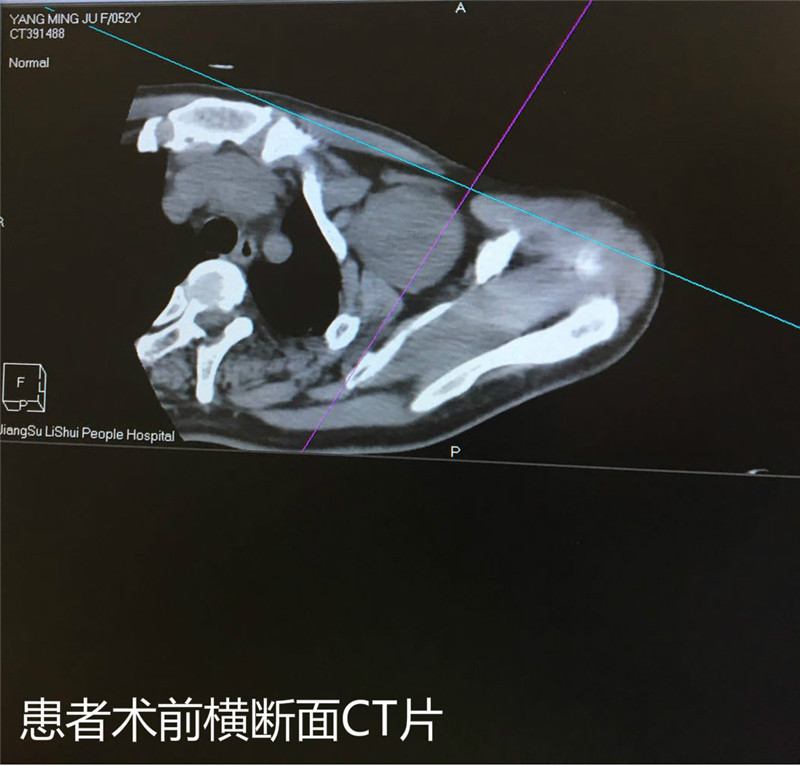 正常人的左侧锁骨下是臂丛神经、锁骨下动脉、静脉等重要组织,而杨大妈的左侧锁骨下却有一个直径约150px的大肿瘤。瘤子压迫重要的神经血管,导致杨大妈左手持续的麻木并进行性加重,该部位的瘤体在我院相对较为罕见。近日,杨大妈在我院骨科成功接受了左锁骨下肿瘤切除术,现术后情况良好。 今年5月份,家住石湫镇的52岁杨大妈逐渐出现左手麻木疼痛的症状,开始以为自己年纪大了的原因,后来病情逐渐加重。到6月份时大妈出现左手的肌力下降,干活或者持物都受到了严重的影响,遂就诊于我院。完善检查发现,血管神经明显受压,急需手术解除压迫。左锁骨下区域的肿瘤,邻近区域都是重要的血管及神经,一旦术中无意损伤,那对患者而言将是致命的打击,甚至因出血无法止住而导致死亡。 “左锁骨下肿瘤这么大,且生长的位置靠近臂丛神经及大血管非常罕见,阅读CT可见左侧头静脉已被压扁,做上肢的血液供应已受波及,且肿瘤正不断的变大,压迫症状在患者身上越来越明显。”骨科陈优民主任看到CT时很惊讶。他介绍,经过穿刺活检,确诊为神经纤维瘤。患者入院后,由于考虑到肿瘤源自神经,且压迫症状已严重影响到患者的生活,如果放任瘤体继续发展,甚至有危及患者生命的可能,手术是唯一救治方法。但要切除这个部位的瘤体,风险性极高,一是瘤体的解剖位置特殊,隐藏于左侧锁骨下,手术空间非常小,进而手术视野范围也小,大大增加了手术难度;二是瘤体来源于神经组织,在手术剥离过程中如果不能完整剥离则需要姑息性切除,但这样术后复发的几率依旧很大,瘤体引发的症状仍然会卷土重来;三是瘤体位置邻近大的锁骨下动静脉,若是术中损伤,可能因出血而给患者带来生命危险,另瘤体表面也有丰富的滋养血管,所以术中极易引起大出血。 术前,由医务科组织全院多学科会诊讨论患者的诊疗,并制定了最佳手术方案。由胸外科的全勇辉主任与骨科陈优民主任与一起协同手术。术中,医生们打开左侧锁骨下皮肤、脂肪、筋膜、肌肉等组织,在保护周围血管及神经的情况下,小心地将瘤体切除。经过测量,瘤体约150px*125px*100px大小,如一个大大的“桃子”。术后,杨大妈恢复良好,左手疼痛症状明显改善,麻木情况也较术前好转,复查胸部CT肿瘤已完全切除,被压迫的血管也已复张。