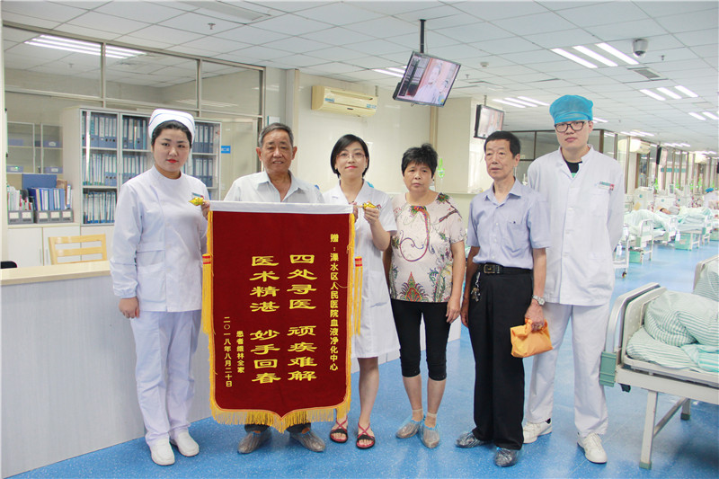 8月22日上午,血液净化中心迎来老王的赠送的一面锦旗。“四处寻医,顽疾难解;医术精湛,妙手回春。”面对老王的盛赞和感谢,血液净化中心副主任赵园园谦虚地说,“这只是个血管穿刺,也就是老百姓说的打针的问题,我们只是技术成熟加经验丰富一点而已。”与老王同来的弟弟可不这么认为:“要不是你们解决我哥哥的打针处疼痛,他都没有信心活下去,你们技术精湛值得赞颂。”到底让老王经历了什么,让他如此的感触至深,我们不妨听一下他的就诊经历。 66岁的老王患肾病多年,随着肾功能衰竭的症状越来越明显,今年四月份必须行血液透析治疗。老王决定听从某医院的安排进行透析治疗。透析俗称洗血,把原来从尿液中排出的毒素和多余的水分通过机器排出体外。透析首先就得“打针”,穿刺成功与否直接影响透析质量的高低和患者的长期生存率。然而就是这个“打针”,老王遇到了大麻烦,他的针就是打不好,由于老王的血管硬化,为他打针的医生护士可是换了好几个,他溧水、南京两地来回多次,始终没有解决他的“打针”问题。透析不充分,一系列毒素蓄积的症状逐渐出现,老王苦不堪言,一度对生活失去信心。 由于透析通路的问题没有解决,他的透析总是一上机穿刺的针眼就开始剧痛,“疼的受不了,实在做不下去,让她们换穿刺位置,总是一打就肿了,她们让我去南京,我年纪大了实在不方便,就想着到你们医院来看看。”“那段时间,我简直生不如死,人疼的受不了。人家透析4个小时舒舒服服,而我最多痛苦坚持2小时。我听人说区人民医院透析开展时间长,技术高,请你们帮帮我啊。”老王满怀期待地对我院血液净化中心的医务人员说。 血液净化中心副主任赵园园告诉笔者:所谓“肿了”,就是打针时损伤血管内膜,老王的动静脉高位内瘘血流量很大,达到了2000ml/min,内瘘穿刺针为16G穿刺针,加之血管较深,肉眼下难以定位,确实很容易出现穿刺血肿。 赵园园主任热情地接待了老王,发现老王的双臂血管条件确实不好。于是就采用移动式多普勒彩色超声进行探查,多普勒彩色超声应用在深静脉穿刺置管术中在我院已经广泛开展,减少了很多并发症的出现。在赵主任指导下, B超引导定位下医护合作找到了倾斜扭曲的血管,发现就是扭曲的血管引起老王穿刺部位的剧烈疼痛,于是大家避开这段扭曲的血管,避开血流量最大的血管,发现了一处穿刺点并成功进行了穿刺,透析期间没有出现血肿、疼痛。 想到之前的每一次透析疼痛难忍的感受,老王非常感激“透析不疼了,真心谢谢你们,让我的生活有了希望!”“不比不知道,我一定要告诉人们,你们是最好的!”于是他同家人将这面“四处寻医,顽疾难解;医术精湛,妙手回春”的锦旗送到血液净化中心。 近年来肾衰竭患者急剧增加,很多患者血管条件差,给护理人员的穿刺带来了困难。自从2017年7月我院与中大医院深度合作后,血液净化中心定期派护理人员至中大医院血液净化中心学习新技术,收获颇丰。病人的满意是对我们医护人员最大的奖赏。我们牢记“守护生命、守护健康、守护爱”的院训,不断提高医疗技术和服务水平,更好服务百姓健康。